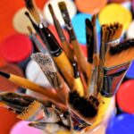 私は普段、アクリル画で絵を描いていますが、アクリル絵の具で筆を使って描く前に、下絵の準備からパネル、紙の下処理、マスクングフィルムやデザインカッター使ったりします。また、目的によって、さまざまな樹類のメディウムを絵の具に混ぜて、使ったりします。霧吹き、紙やすり、綿棒、スポンジなども必要に応じて使います。